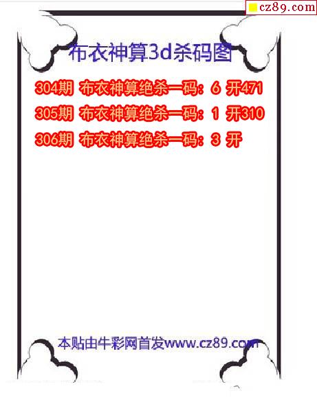 布衣神算杀码2025306期3d图谜(原创)