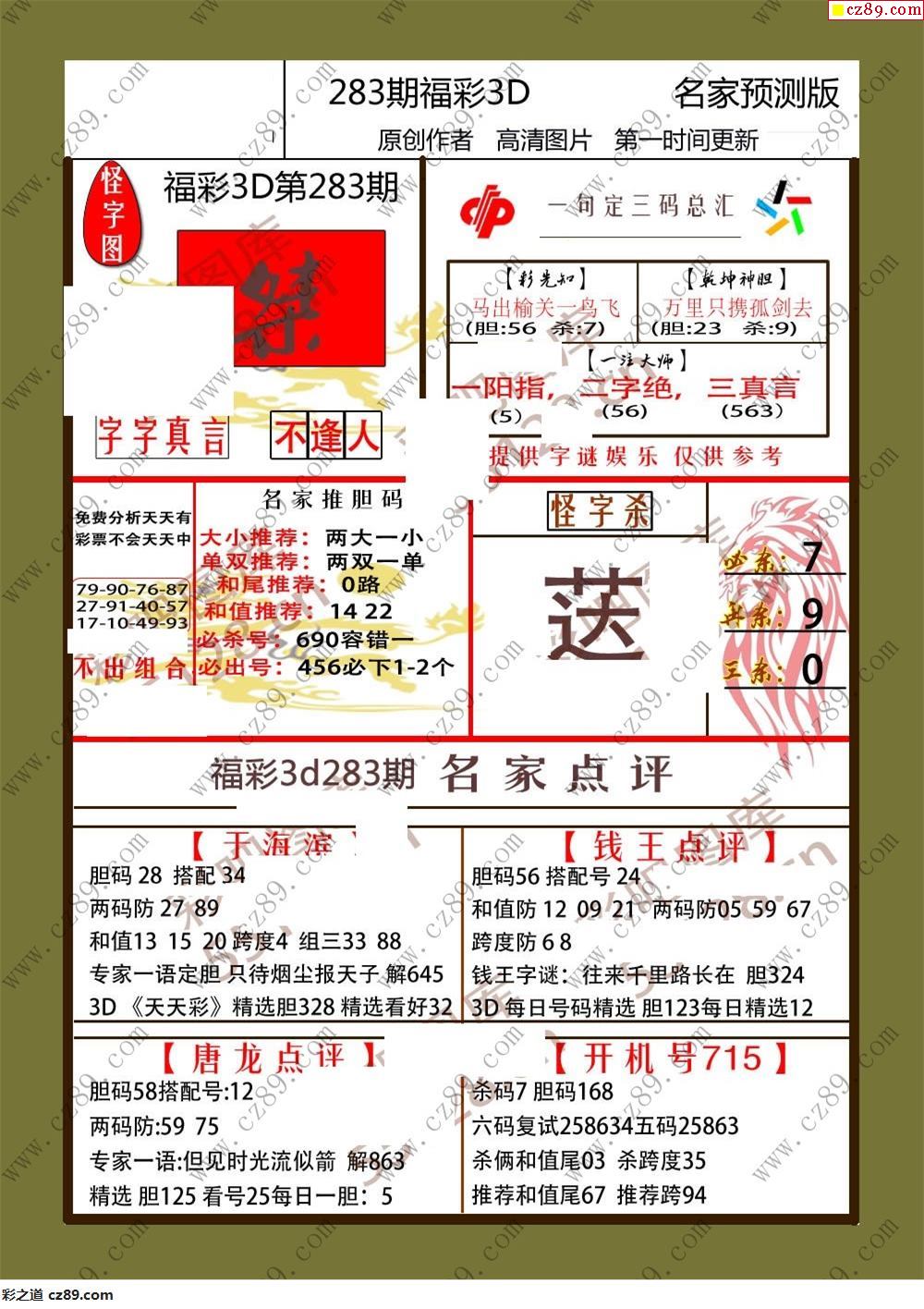 > 25年283期福彩3d牛彩名家预测图谜